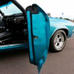 Step back in time with this stunning 1969 Chevrolet Chevelle, a true American muscle car classic. This timeless beauty boasts a captivating Azure Turquoise exterior, a color that radiates a cool, vintage charm, making it stand out from the crowd. Complementing the vibrant exterior is a sleek black interior, offering a luxurious and sporty contrast.